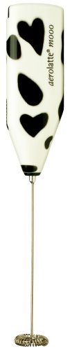 aerolatte Milk Frothers are the world-famous, award-winning, best-selling original steam-free milk frother. Safe and easy to use, the aerolatte milk frother eliminates the need for expensive steam-based machines. It works directly in your mug or glass using an innovative whisk-head to turn milk that has been heated in the microwave or stovetop into rich, thick foam in just 20 seconds. Use for lattes, cappuccinos, milkshakes, and hot chocolate. aerolatte Mooo has a fun Holstein spot pattern and comes with a travel case. Thicker shaft, liquid resistant seal, longer lasting motor ¿ aerolatte. Includes instructions, recipes, and 2 AA batteries. 2-year guarantee.It makes milk really airy and big- but it's definitely not the thick foam you expect on top of a well made cappuccino. That being said, I haven't found anything that makes foam quicker or easier.