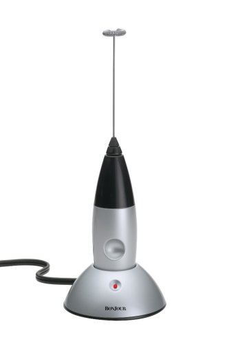 In just seconds, bonjour's automatic frothers produce rich creamy froth for your favorite coffee drinks. bonjour's best frother, now ready at all times! With the rechargeable bonjour primo latte frother there is no need to replace batteries ever again. Features a rechargeable base for easy countertop access. Black and silver with silver base.I have had this for 5 months and this morning it died. I will go back to the ones with replaceable batteries..that one lasted a couple years before it slipped away. This worked great until its way too early death.